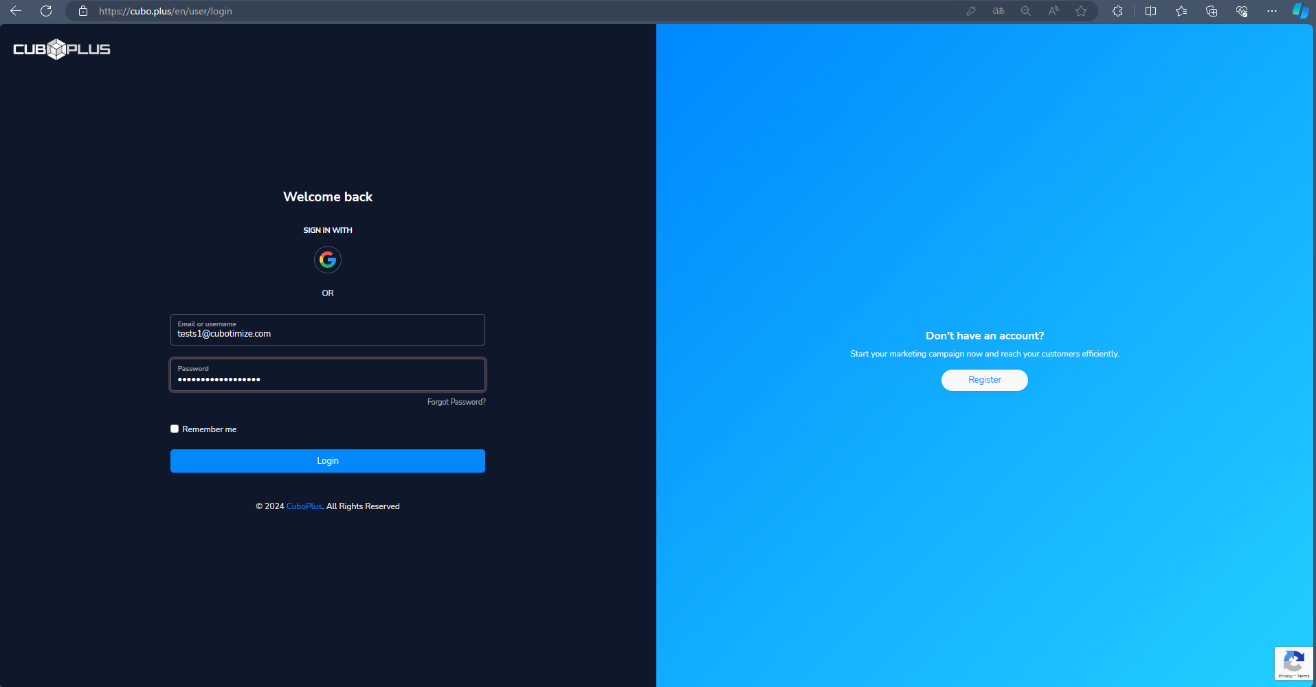 1.1 Open your browser and go to the official CuboPlus website: https://cubo.plus/